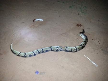 According to him, the snake was killed in his house at night. He displayed pictures of the dead snake with the head cut.