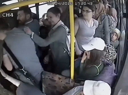 It was gathered that the suspect was later arrested and charged with assault after he was grabbed by the passengers when he tried to flee the bus as the doors opened in Turkey’s north-western Kocaeli Province.