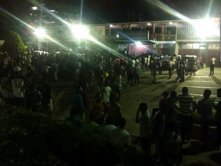 Several students gathered at Independence Hall, popularly known as Indece hall and the leaked video was shown on a large projector.
