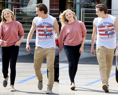 They're inseparable! Hollywood actress, Chloe Grace Moretz and boyfriend, Brooklyn Beckham look content as they step out in matching shoes. Popular Hollywood actress, Chloe Grace Moretz and Brooklyn Beckham which reportedly haven't left each other's side over the last week, managed to find a way to get even closer, as they donned matching checked slip-on shoes for a quick shopping trip in Beverly Hills, California on Thursday.