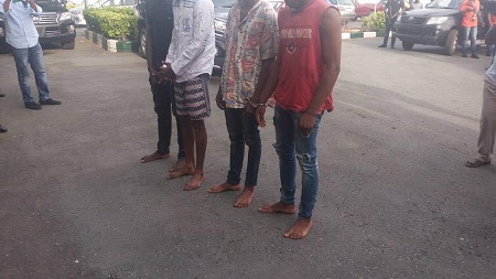 The names of the suspects are: Chikezie Macdonald a.k.a, Walking Dutch (22yrs), Chidozie Obi a.k.a Small body (21yrs), Chukwuemeka Awom a.k.a Arch Angel (25yrs), and Chigozie Francis Eberendu a.k.a Star boy (23yrs).
