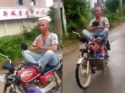 A video footage posted on Shanghaiist's Facebook page on August 17, which shows a man apparently meditating while riding a motorbike in China, has gone viral online and social media.