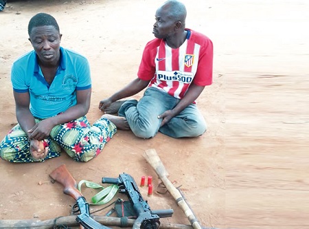 It was learnt that while the police arrested the two suspects, other members of the gang fled.