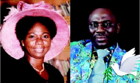 Vera Aluma (L) slapped a certain Josephine Akor for crying during the interment of the reverend (R)