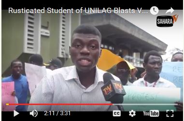 A student of the University of Lagos who made unsavoury remarks about the institution and its management and was afterwards suspended has launched more verbal attacks. Adeyeye Olorunfemi, who was rusticated on allegation of making defamatory post about the varsity's Vice Chancellor, Prof. Rahman Bello on Facebook has spoken up again in a new video.