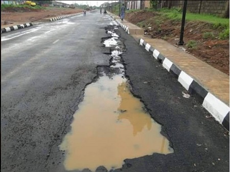 The road deteriorated barely two weeks after commission. Itokun road is part of the 114 LGA road commissioned by Governor Akinwunmi Ambode.