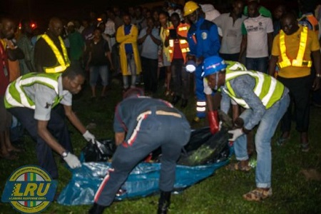 Officials at the Lagos State Emergency Management Agency arrived the scene to remove the corpse of the accident victim and also remove the car wreck.