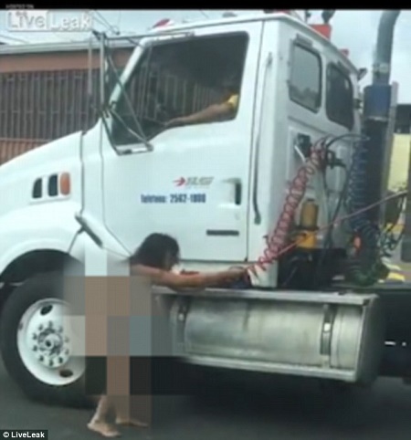 After the vehicle sped off she strolled along the middle of the road quickly peeling off her clothes and was fully n*ked in a number of seconds, Dailymail reports.