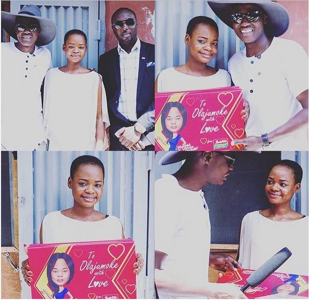 Olajumoke Orisaguna yesterday joined the short list of Nigerian celebrities who have been honoured with customized cartons of Indomie noodles. Nigerian singer, Sound Sultan alongside another official of the Indomie noodles company paid a surprise visit to the former Agege breadseller-turned-supermodel - Olajumoke Orisaguna.