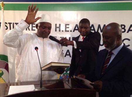 During the brief inauguration speech, Mr. Barrow asserted his new role as commander and chief of Gambia’s armed services, ordering soldiers to stay calm and remain in their barracks. Those who did not would be considered rebels, he said.