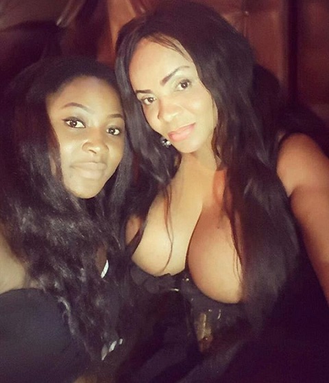 The singer and video vixen who came to limelight after featuring in a music video by Obesere, and known for showing off her large bosoms at social events and music videos, was pictured with a friend as her natural endowment almost spilled out of her dress.