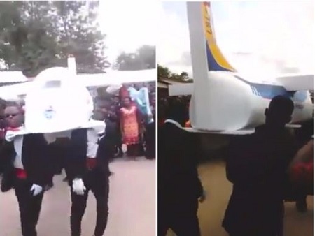 A dead man has been buried inside a spectacular aeroplane casket causing quite a stir among people in his town. This is the moment a dead man was seen being buried inside an aeroplane casket.