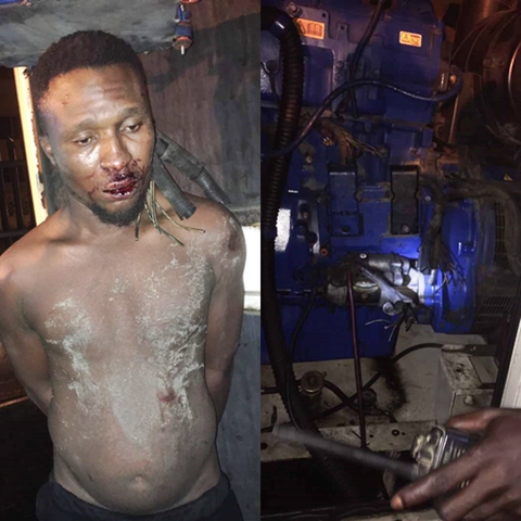 The man who is reportedly vandalising First Bank Plc's generator at 4:36a.m in the Ilupeju area of Lagos, has been nabbed, and handed over to the police. According to multiple reports, the above man who has been vandalising First Bank Plc's generator in the Ilupeju area of Lagos, was apprehended this Monday morning at 4:36a.m and handed over to the operatives of the Nigerian Police Force.