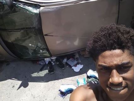 From the photo posted on his wall, he took a selfie beside the wrecked car and captioned. “First car accident shit was fun.”