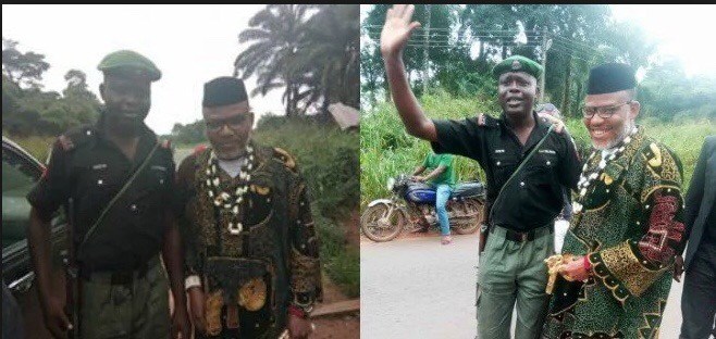 A police officer seen posing with IPOB leader, Nnamdi Kanu