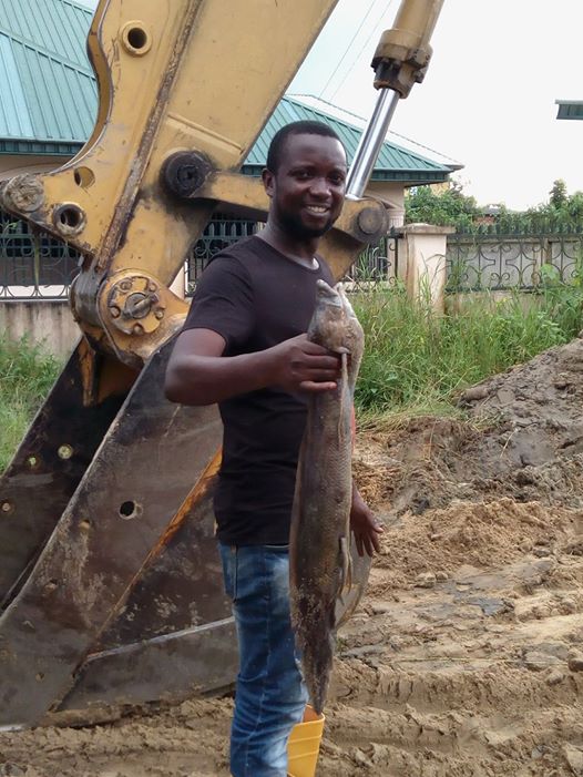 A Nigerian man by name, Emmanuel Emmanuel Udoh, has shocked people after sharing the photo of a strange fish he caught while excavating a residential area in Bayelsa state.